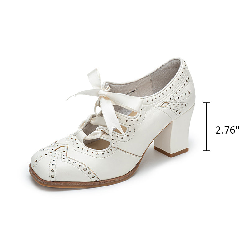 Step into timeless elegance with these handmade vintage Mary Jane pumps, blending British retro charm and modern comfort. Featuring a square toe, delicate lace-up ribbon, and refined brogue detailing, these shoes exude understated sophistication. Crafted from matte soft cowhide leather with a durable rubber sole and a stable 70mm block heel, they offer both beauty and all-day wearability. Perfect for pairing with retro, cottagecore, or classic British-style outfits, these pumps bring graceful femininity to any occasion.