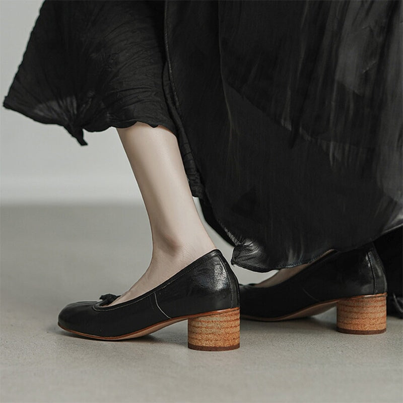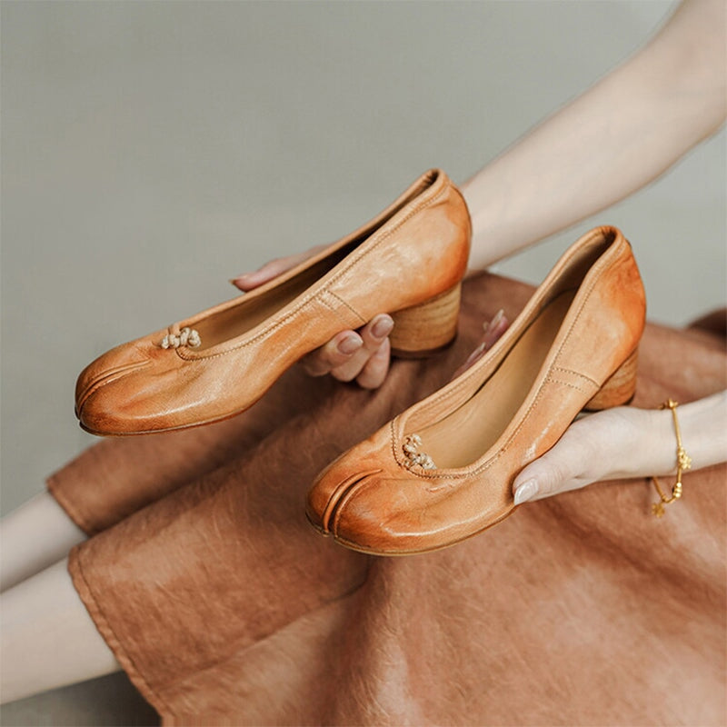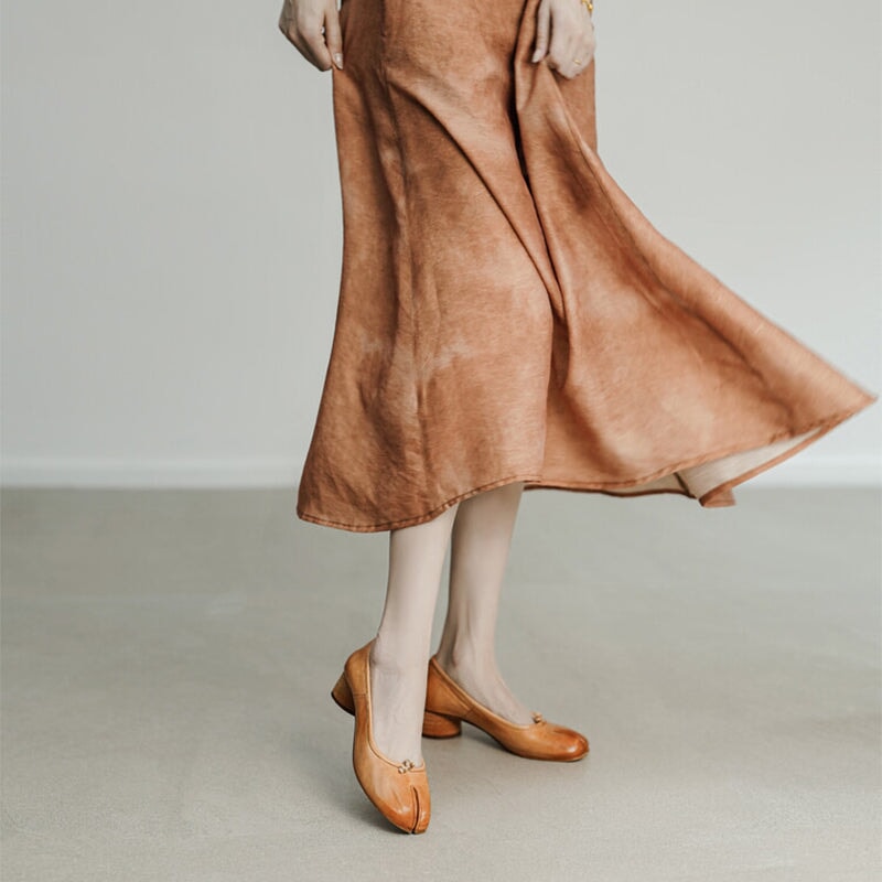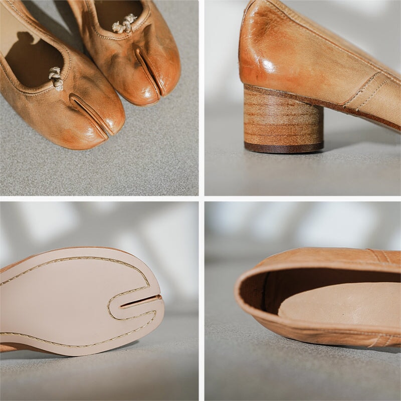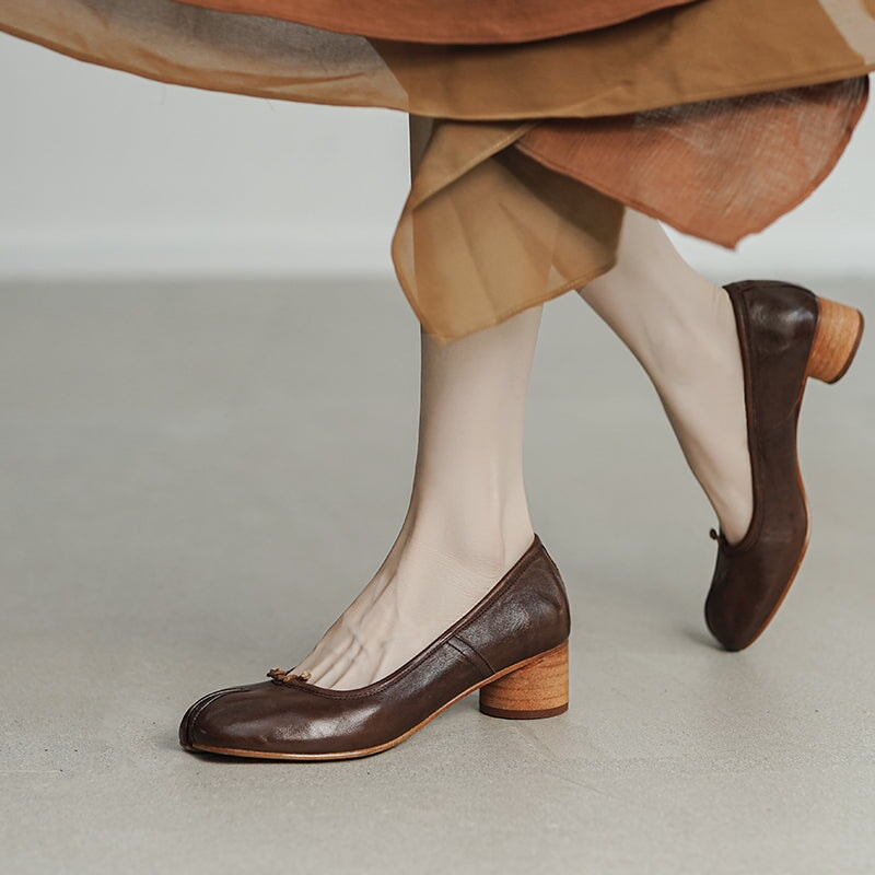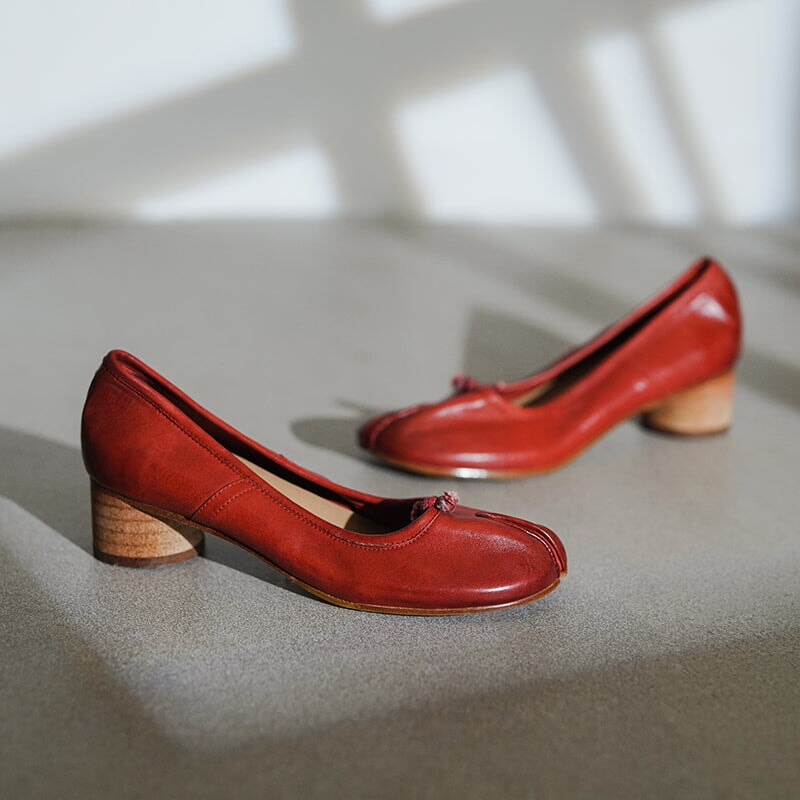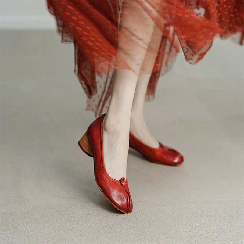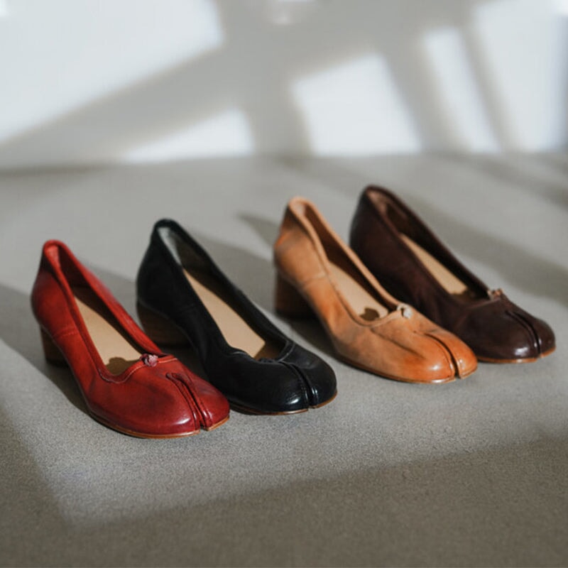 Stylish Split-Toe Block Heel Ballet Shoes For Women, Featuring A Sophisticated 55mm Heel. Elegant And Refined, These Heels Are Available In Four Timeless Colors: Red, Brown, Black, And Beige. Perfect For Adding A Touch Of Class To Any Outfit, They Combine Comfort With Distinctive Design, Making Them A Must-Have For The Fashion-Forward Wardrobe.